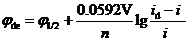 在极谱波上除可以测得极限扩散电流id外,同时还可测得另一个重要参数――半波电位(φ1/2)。半波电位是指扩散电流为极限扩散电流值的一半时所对应滴汞电极的电位。在支持电解质浓度和温度一定时,φ 1/2为定值,与待测物质浓度无关,可作为定性分析的依据。