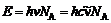 光子的能量可用J(焦[耳])或eV(电子伏)表示。eV常用来表示高能量光子的能量单位,它表示1个电子通过电位差为1V的电场时所获得的能量。1eV=1.602×10-19J,或1J=6.241×1018eV。在化学中用J·mol-1为单位表示1mol物质所发射或吸收的能量