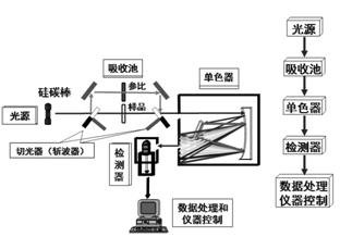 到目前为止,红外光谱仪的发展大体可分为三代,第一代是用棱镜作为分光元件,其缺点是分辨率低,仪器的操作环境要求恒温恒湿等;第二代是衍射光栅作为分光元件,与第一代相比,分辨率大大提高、能量较高、价格角便宜、对恒温恒湿的要求不高;第三代是傅立叶变换红外光谱仪具有高光通量、低噪音、测量速度快、分辨率高、波数准确度高、光谱范围宽等优点,扩展了红外光谱技术的应用领域。上述三代红外光谱技术一般都是指透射红外光谱技术,由于投射红外光谱技术存在如下不足:固体压片或液膜法采集制样麻烦,光程很难控制一致,给测量结果带来误差;大多数物质都有独特的红外吸收,多组分共存时,谱峰重叠现象普遍。所以,对某些样品的测试仍有较大的局限性。漫反射、衰减全反射等硬件和差谱等软件的要求,大大扩展了红外光谱技术的应用领域。