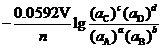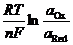 上述方程式称为电极反应的Nernst方程。