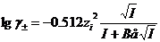 式中,γi为i离子的活度系数,它与离子电荷ni、离子半径大小r及离子强度 I 有关。