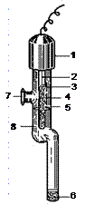 | Hg)是最常用的参比电极之一,其构造有多种多样,但基本原理是相同的。图8.5是饱和甘汞电极的基本构造,它是由汞、糊状的氯化亚汞和氯化钾饱和溶液所组成。使用时,借助盐桥与试液相连,通过导线与测量仪器联结。