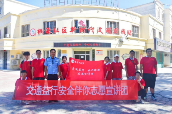 、阿拉尔市桃园社区、阿拉尔市农垦社区、阿拉尔火车站等地。此次活动旨在向学生及居民们普及交通安全法律法规和行车和行走安全知识,提高大家的交通安全意识,为创建文明城市注入新活力,展现青年学子的责任与担当。