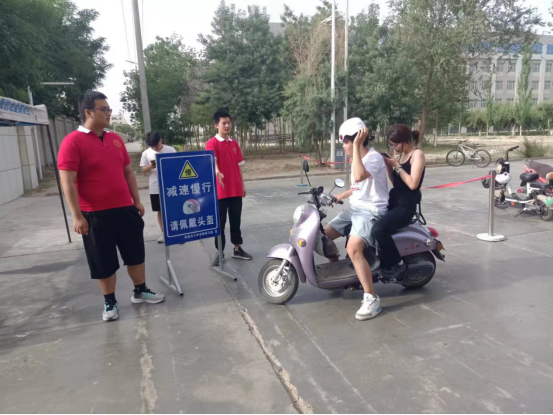 人流量较大的西门和北门,对未佩戴安全头盔骑行电动车的同学进行安全劝导,并协助交警进行交通疏导。