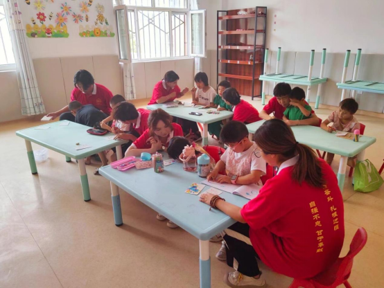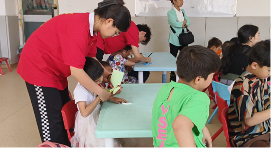 活动期间,实践团成员创新思路,精心设计了一系列寓教于乐的活动,将民族团结巧妙融入手工制作、观影启迪、互动游戏等多个环节。通过亲手制作民族特色手工艺品,孩子们不仅锻炼了动手能力,更在过程中深刻体会到了各民族文化的独特魅力与和谐共生的美好愿景。通过观看奇幻动画电影,孩子们在获得乐趣的同时,也能领悟到民族团结的重要意义,在欢声笑语中,孩子们不仅收获了知识的甘露,更促使民族团结的种子在他们幼小的心田里悄然萌发。
