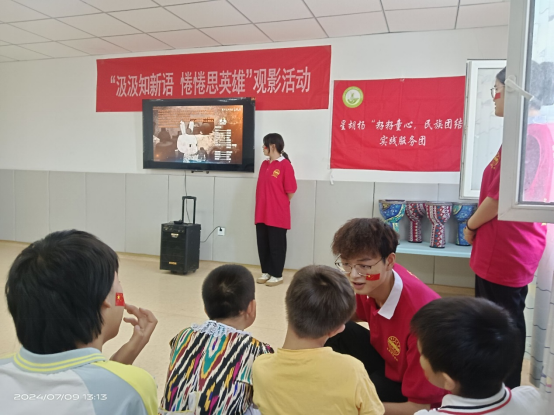 7月9日,活动在“汲汲知新语,惓惓思英雄”为主题的观影活动拉开序幕。通过观看动画电影《那年那兔那些事》,让孩子们深切感受爱国情怀的力量。影片中志愿军战士们在极寒天气下坚守阵地,与敌人殊死搏斗,特别是“冰雕连”的英勇事迹,让孩子们的心灵得到了深刻的触动,让孩子们在传承红色精神中进一步铸牢中华民族共同体意识。