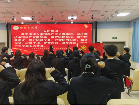 2024年下半年新团员入团仪式在国重室B301顺利召开。学院团委书记许疆维、优秀学生党员代表吕芮贤和学院34名新团员参加会议。会议由组织部部长马旭珍主持。
