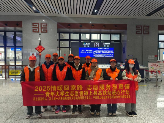 1月14日,安徽省阜阳市颍上高铁北站开展一场别开生面的春运志愿服务活动。张子恒与百余名返乡大学生志愿者共同参与了本次活动。