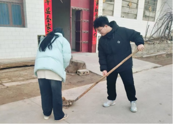 生物技术2024级1班的杜湘龙和一群来自不同高校大学生,一同走进了咸阳市礼泉县南屯村,开展“维护街区,帮助老人”的“返家乡”志愿服务活动。