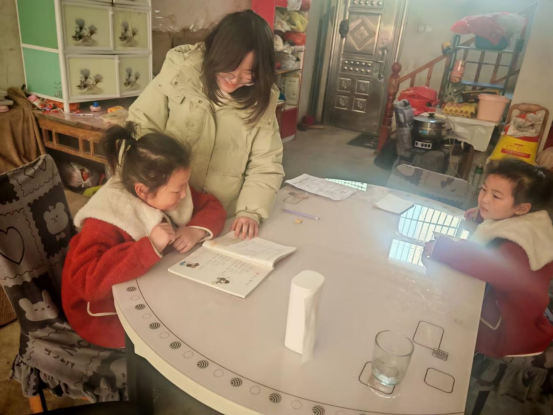 生物技术2024级的大一学生张雪月寒假期间积极参与“返家乡”社会实践活动,在安徽省亳州市利辛县西潘楼镇中心小学就近开展“送教上门”志愿服务活动,为当地的孩子辅导假期功课、解决学习难题。