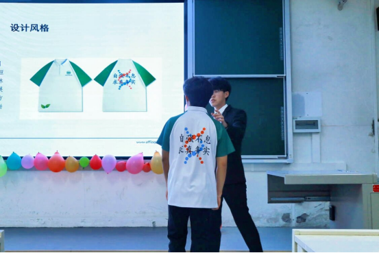 在逸夫教学楼阶教4成功举办院服设计大赛决赛。此次活动由校工会郁轩、学院团委书记许疆维、学院本科生党支部副书记蒋玉祥担任评委,经过前期线上大众投票评审,最终选拔出10件作品参与本次决赛的答辩展示。