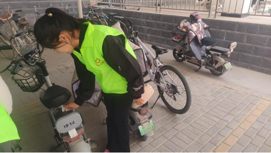活动当天,志愿者们分工明确,兵分三路,有条不紊地开展工作。第一组对西区十二号楼的车辆进行擦拭,第二组对西区十三号楼的车辆进行擦拭,第三组同学则对西区充电桩进行擦拭。经过三个小时的劳作,原本布满灰尘的车辆焕然一新。在清洁车辆的同时,志愿者还将散乱停放的非机动车转移至指定停车区域,对占用消防通道的车辆进行重点清理。