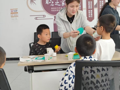 与此同时,趣味知识讲座也在同步进行。宣讲团成员化身“环保小讲师”,用生动活泼的语言向居民讲解垃圾分类知识。为了让知识更易于理解,队员们还准备了垃圾分类道具箱,将写有“废纸”“果皮”“灯管”等字样的卡片与对应垃圾桶模型分发到居民手中,邀请大家上台进行分类投放模拟。