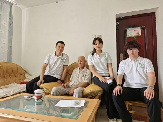 (图为指导老师带领实践团成员采访老军垦李庆堂)