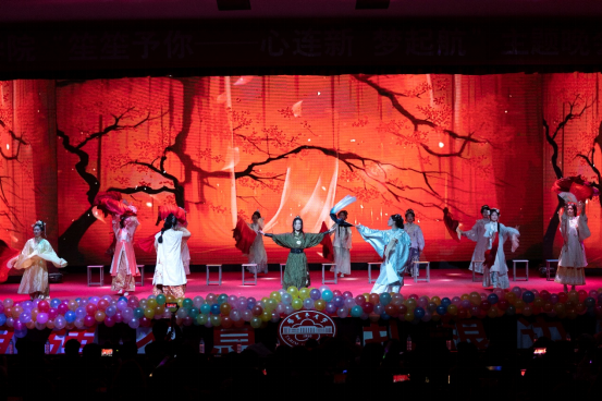 本次晚会以“聚力扬帆・梦想起航”“青春相聚・共赴新途”“璀璨相迎・未来可期”三大篇章展开。民乐《金蛇狂舞》奏响开场序曲,国风舞蹈《又见红楼梦》、街舞《舞·限可能》、武术《精武青春》、朗诵《我的名字叫胡杨》等节目轮番上演,本次晚会涵盖民乐、民族舞、情景剧、走秀、朗诵、武术等多元形式,共计11个节目,充分展现学院风采与青春活力。晚会的最后,胡杨乐队以《我的未来式》《爱的初体验》燃情闭幕,为晚会画上圆满句号。