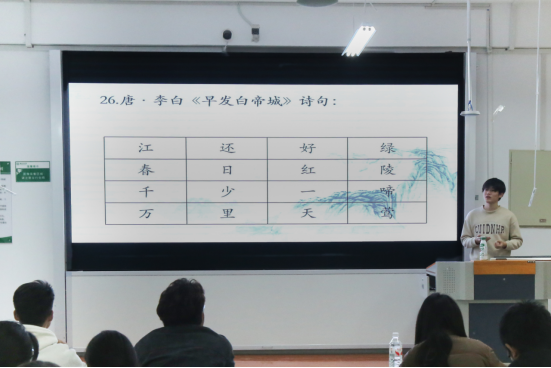 第二届“品诗词,诵古韵”诗词大赛在逸夫教学楼306教室隆重举行。来自学院各年级的诗词爱好者齐聚一堂,以诗为媒,共赴一场浸润心灵的文化盛宴。