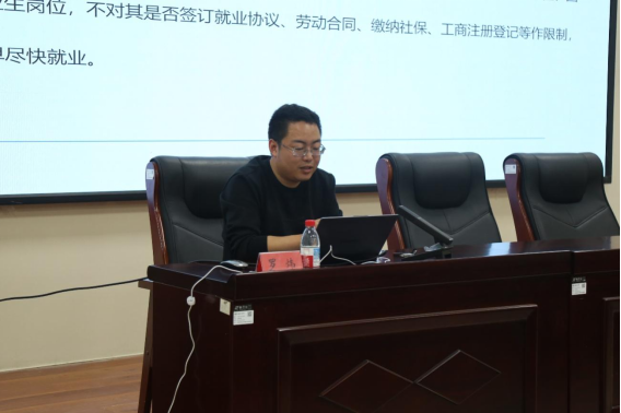 随后,一师人社局就业促进科主任罗炜凭借丰富的工作经验和深厚的专业知识,对大学生基层就业政策进行了更为深入的剖析。他指出,基层就业不仅是大学生实现个人价值的重要途径,也是推动社会发展的积极力量。罗炜主任还分享了一些基层就业成功案例,激励同学们勇于投身基层,在广阔天地中锻炼自己。