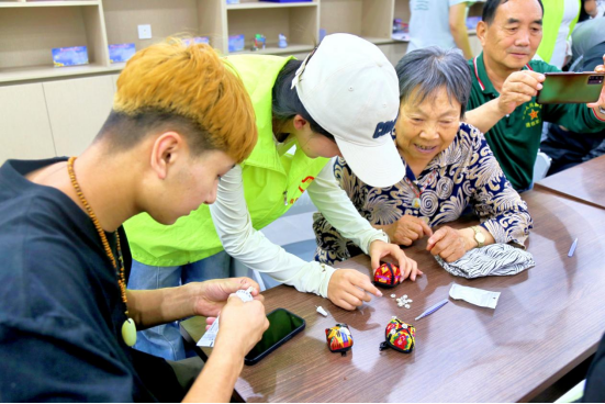 在手作体验环节,参与者们以“民族团结”为主题,亲手制作民族小帽发夹。活动现场,志愿者耐心指导大家使用材料包中的饰品、胶水等工具,鼓励亲子组合、邻里搭档共同创作,在传统纹样的基础上融入个人创意。通过这一环节,参与者不仅直观感受到各民族服饰的美学价值,更在协作中深化了“中华民族一家亲”的情感认同。