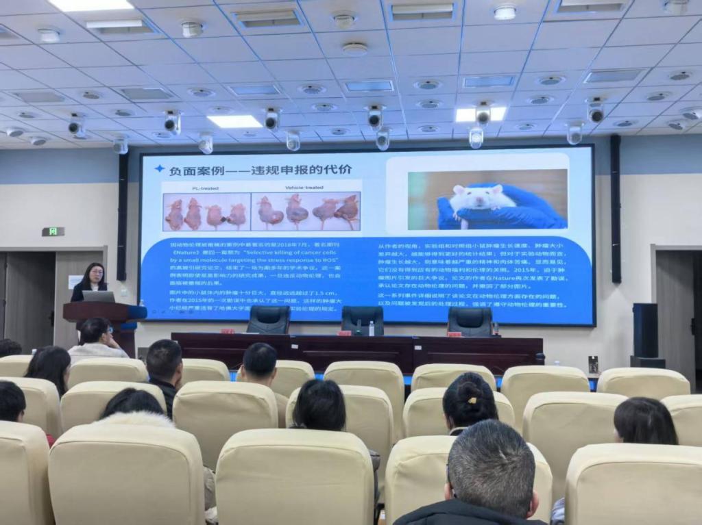 梅余霞副院长寄语青年教师:既要向资深教师学习,也要发挥自身创新优势。随后她主持伦理培训,以校伦理委员会章程为依据,强调国自然申报“伦理先行”,并结合《Nature》期刊等撤稿案例,解读人体研究、实验动物“3R原则”等核心要求,警示全体教师规避科研伦理高风险行为,筑牢科研诚信底线。