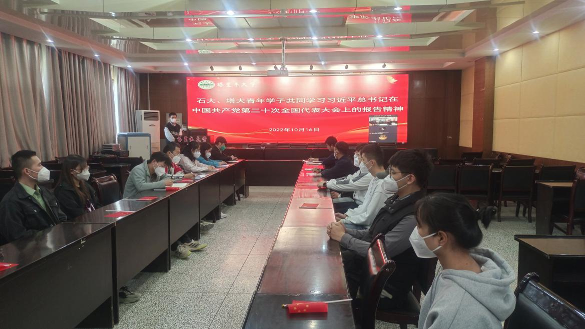 生科院两校两院之间的学习交流合作与密切联系,10月16日下午,塔大生科院学生党支部联合石大生科院学生党支部开展党的二十大报告精神学习讨论并交流学习收获和体会,双方学院党委副书记、学办全体辅导员及两校全体青年学生党员共同参会。