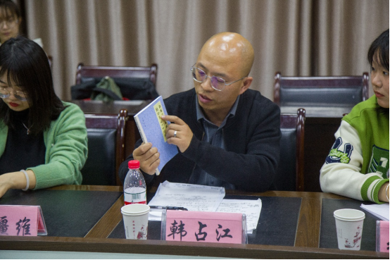 韩占江老师以“读书见真味,论道品人生”为主题,分别从“选好书、读好书”“反复阅读同一本书”“读原著悟原理”“掌握读书方法”“文学作品要与作者本人之间建立关系”五个方面与生科学子进行读书交流。韩老师还特意带了8本珍藏多年的书籍,分别介绍了每本书的背景和内容,告诉大家在选书方面,要根据自己的喜好选书,不要盲目跟风。