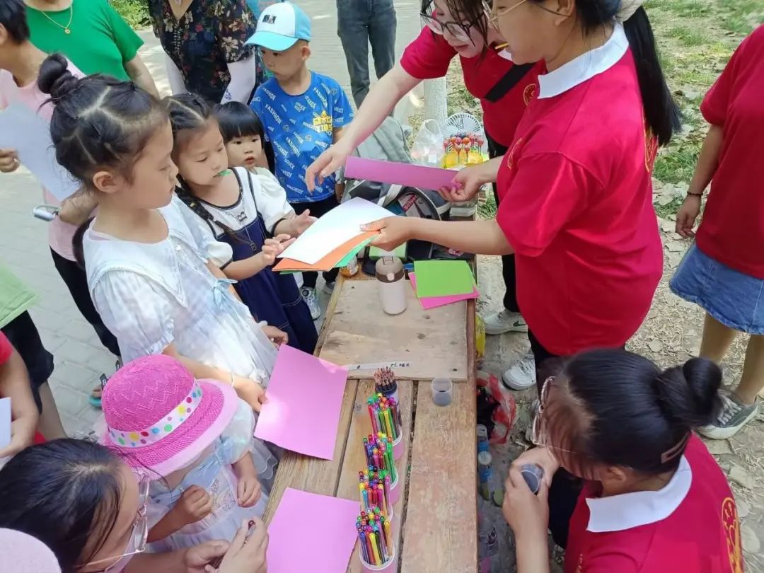 提前了解到小区里有很多小朋友,特此准备了彩纸与彩色铅笔在团队成员宣讲之后让小朋友们根据宣讲内容在彩纸上画画。宣讲成员先阐述垃圾分类的原因进行总概括,接着由两名成员分别对有害垃圾、厨余垃圾、可回收垃圾、不可回收垃圾等进行宣讲。