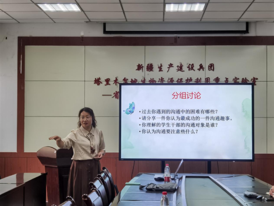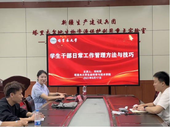 此次课程从团学干部的未来成长与发展规划、大学生心理特点与干部沟通技巧、学生干部日常工作管理方法与技巧三方面展开讲授,并参观三五九旅屯垦纪念馆和校史馆。