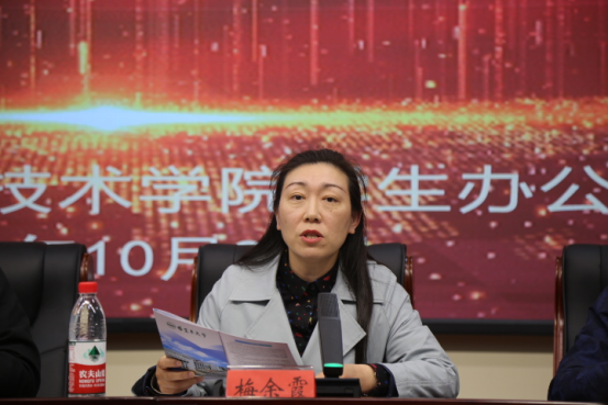 梅余霞副院长对学院研究生专业做了简洁扼要的介绍。她提醒同学们要依据自己的性格、对职业的定位、对导师所做课题研究方向的兴趣程度等因素来作为考研报考的方向。