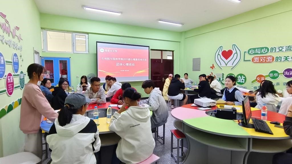 2023年心理委员培训班在先进院B301顺利举行。学生办公室主任艾山江,辅导员邓利军,许疆维,蒋玉祥出席会议,会议由邓利军主持。生科院与园林院全体2023级心理委员参与培训。