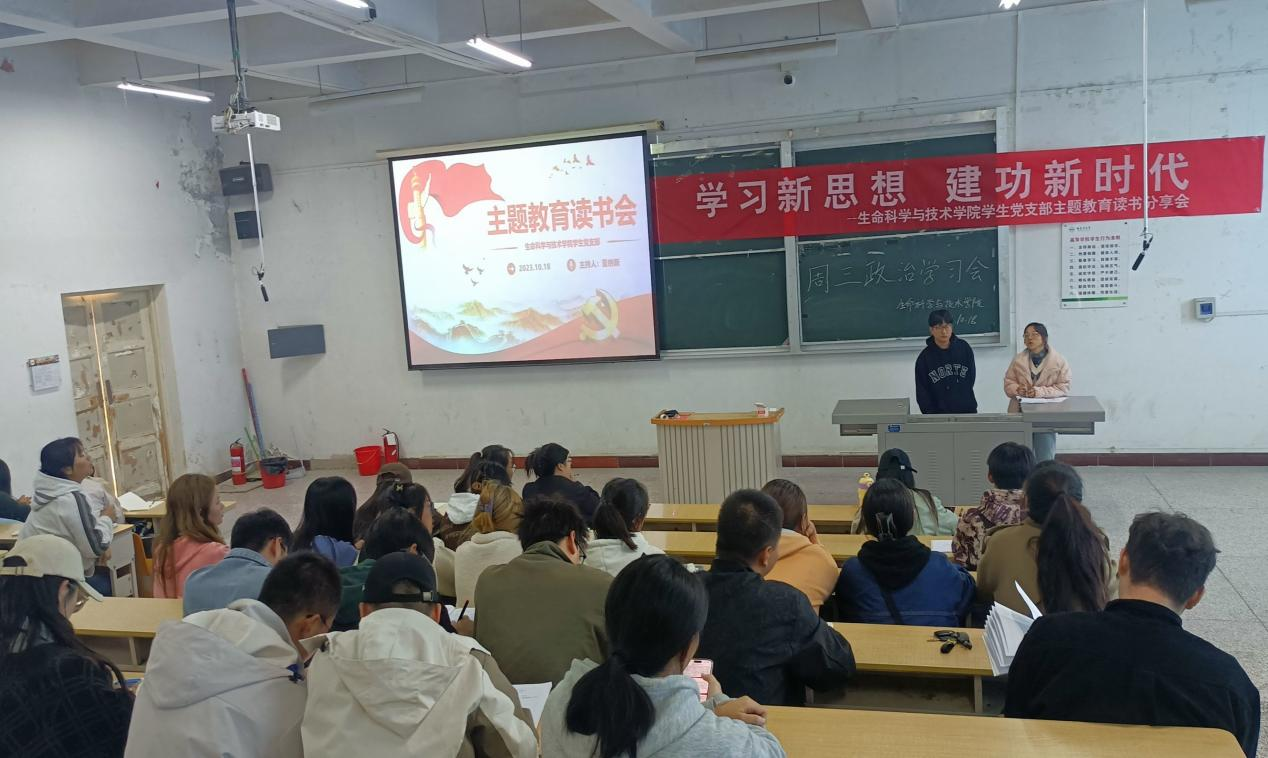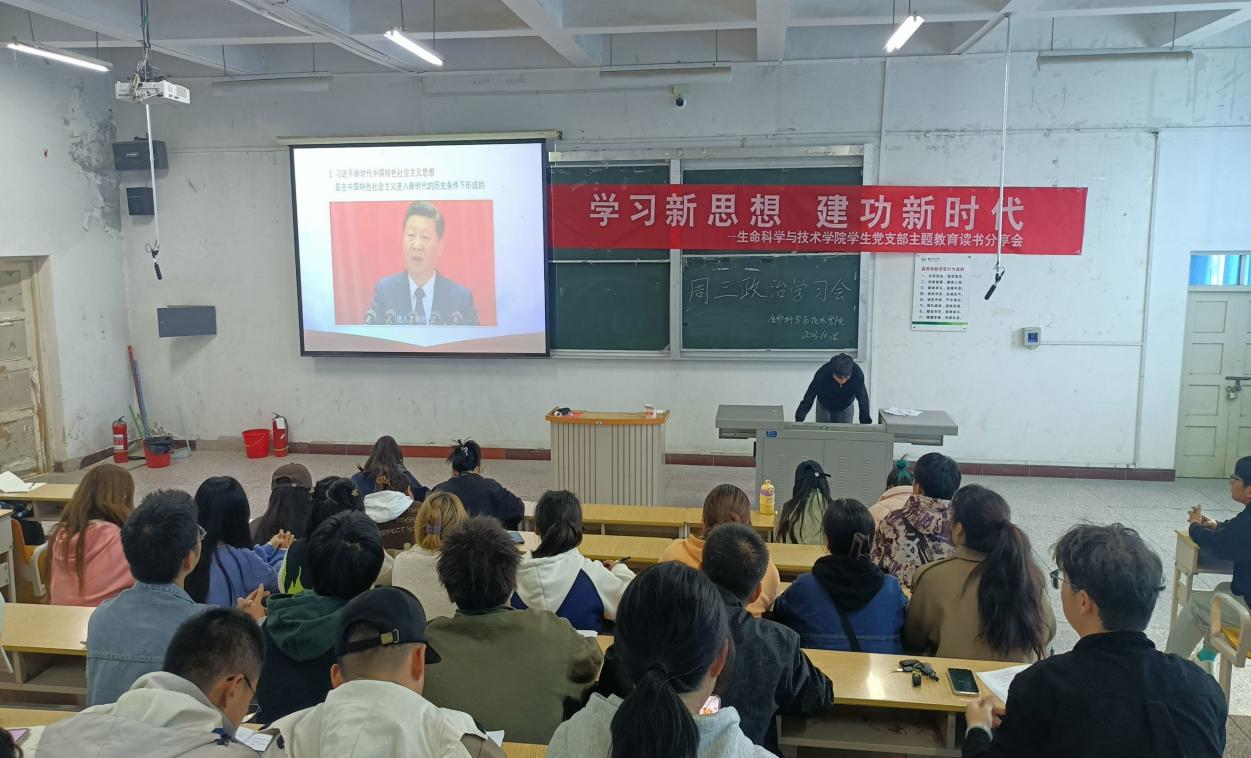 学生党支部组织开展“学习新思想,建功新时代”读书分享会。会议在二号教学楼阶教2举行,由董纳新和李亚第主持。