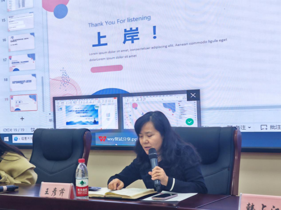 王彦芹老师对全体备考同学取得的初试佳绩表示祝贺,她强调了复试的重要性,并指出复试对于每一位考研学子来说,都是一次重要的考验。他结合自己多年复试面试经历,给同学们讲授了复试要点、准备方法、面试技巧,她寄语同学们要充分利用交流会宝贵经验,充分准备,反复模拟,大胆实践,保持良好心态迎接挑战。