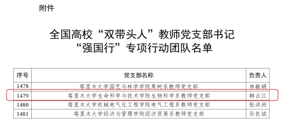 近日,教育部公布全国高校“双带头人”教师党支部书记“强国行”专项行动团队名单,生命科学与技术学院生物科学系教师党支部成功入选。