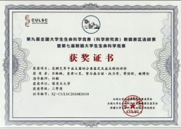 “全国大学生生命科学竞赛(CULSC)”是全国高校生命科学领域的顶级权威赛事,涵盖生物、食品、医学、药学、农学、环境等高校生命科学领域,分科学探究和创新创业两个赛道,是教育部官方认可78项全国大学生学科竞赛之一。在往年的竞赛中,我校学生曾获得科学探索赛道新疆首个全国一等奖的佳绩。今年,我校学生又获得了创新创业赛道2项全国三等奖,是我校在该竞赛上的新突破。