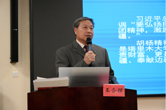 自创办以来,始终与胡杨精神紧密相连,一代代塔大人正是凭借着这种坚韧不拔的精神,在边疆教育事业中攻坚克难、砥砺前行。讲座中,王合理教授还分享了诸多校史中的红色故事,让在场师生深刻感受到胡杨精神与红色血脉在学校发展中的传承与延续,引发了师生们的强烈共鸣。