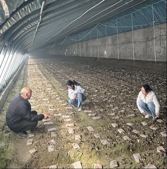 胡建伟教授带领的食用菌科技服务团队,与产业园职工紧密协作,从土壤处理、菌种播种到冬季发菌管理全程提供技术指导。当前正值出菇关键期(20-30天),团队依托智能化温控系统与精准灌溉技术,将大棚温湿度、二氧化碳浓度等数据实时传输至管理终端,确保环境参数稳定。今年基地出菇率较往年提升约35%,菇形均匀、品质优良,经济效益显著提升。