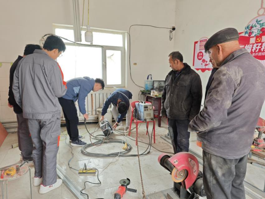 培训一 塔里木职业技术学院伊东山和张建鹏老师在墩买里村电焊操作间实地开展电工、焊工培训教学。内容涵盖电工基础、焊工操作、安全规范及设备维护等实用技能。