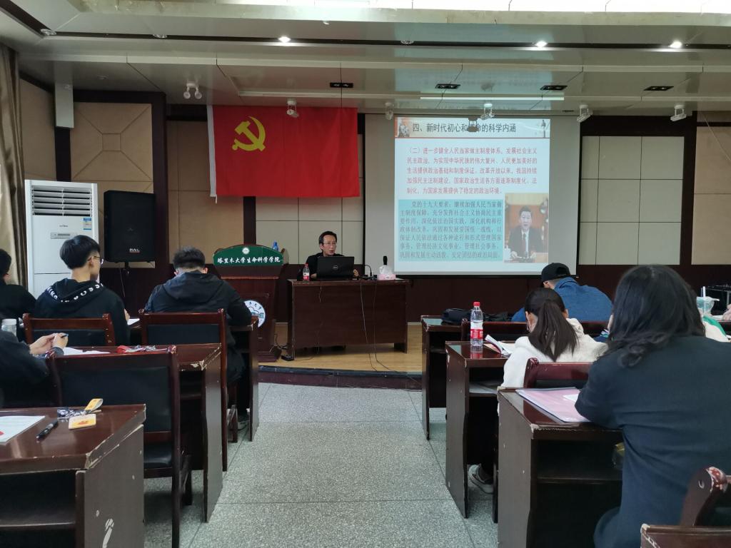 毛伟娜老师在《学习新党章·争做合格党员》的党课上,要求学员认真学习党章,深刻认识新党章是一部更加完善,符合时代要求的条令条例。新党章的修改,是给每一位同学提出了更高的要求。