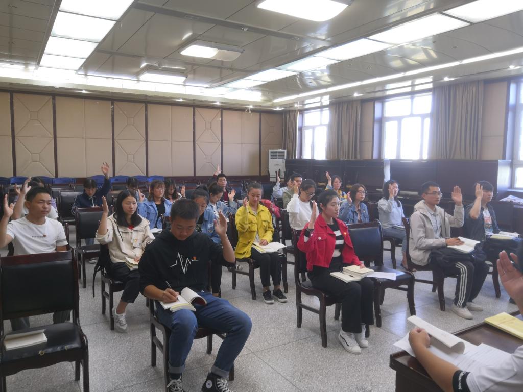 会议最后由毛梓僮和李宁老师带领全体党员共同学习了《见证初心和使命的十一书》中贺页朵的宣誓书和傅烈的绝命书两篇英雄人物的事迹,全体党员感触颇深,纷纷表示一定要向英雄前辈学习,忠诚于党,无私奉献,为共产主义事业奋斗终身的精神,为决胜全面建成小康社会、夺取新时代中国特色社会主义伟大胜利、实现中华民族伟大复兴的中国梦汇聚磅礴青春力量。