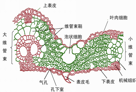 单叶互生,叶分叶鞘、叶片、叶舌 |